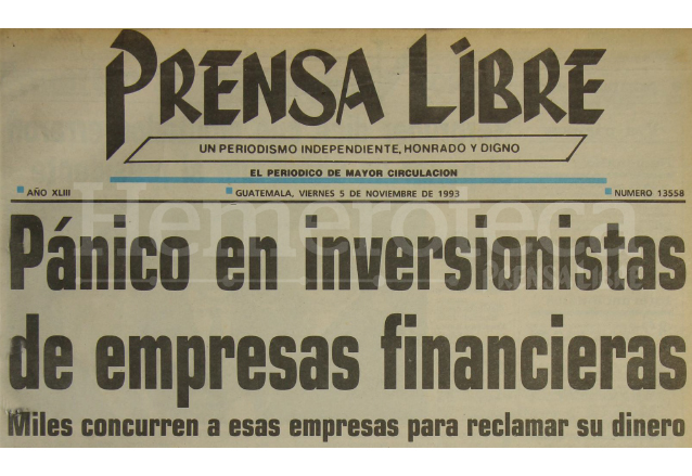 Entre los múltiples afectados figuraba un grupo de comerciantes, a quienes la financiera fantasma desaparecida de la noche a la mañana les estafó varios millones de quetzales. De inmediato iniciaron las acciones legales y denuncias ante la Policía Nacional para dar con el paradero de los estafadores.