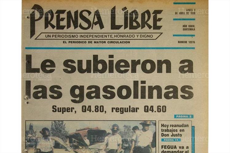 Prensa Libre publicó el 26 de julio de 1954 que “el próximo sábado treiuntiuno de los corrientes entrará en vigor el nuevo precio de la gasolina, de treinta centavos de quetzal por galón”.