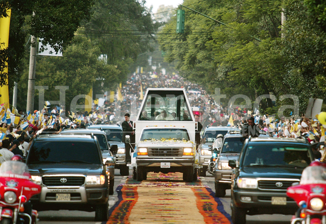 Al grito de “Juan Pablo II te quiere todo el mundo”, cientos de miles de cato?licos se volcaron a las calles para dar la bienvenida al Papa a su llegada a Guatemala. Gritos, porras, cantos y hasta la?grimas, eran parte del ambiente generado por los fieles para dar la bienvenida a la ma?xima autoridad de la Iglesia Cato?lica, que llego? al pai?s para canonizar al Hermano Pedro de Betancur.