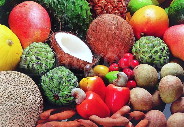 - Caimito (Chrysophyllum cainito L.): Dulce, carnoso y de olor agradable contiene calcio, fibra, fósforo, hierro, vitaminas. A, B y C.