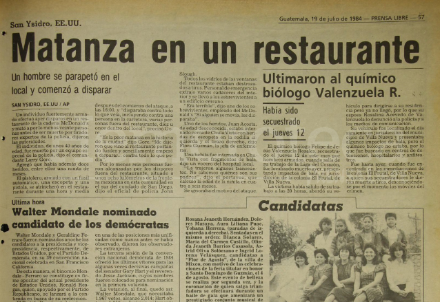 El alcalde de San Diego, Roger Hedgecock, dijo a la prensa que la matanza parecía un acto aislado. “Fue obra de un solo individuo. No tiene nada que ver con el terrorismo, las olimpiadas ni nada de nada”, afirmó.