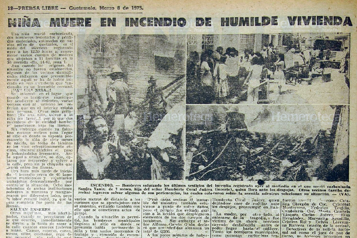 Sin embargo cuando ya faltaban escasos metros para llegar al sitio donde se suponía que permanecía la niña de siete meses de nacida, un techo de láminas se les vino estrepitosamente encima, obstaculizándoles el paso y lesionándolos levemente. Ante aquella situación, se dijo, optaron por retroceder y volver a la calle, pero sin la chiquilla que murió entre las llamas.