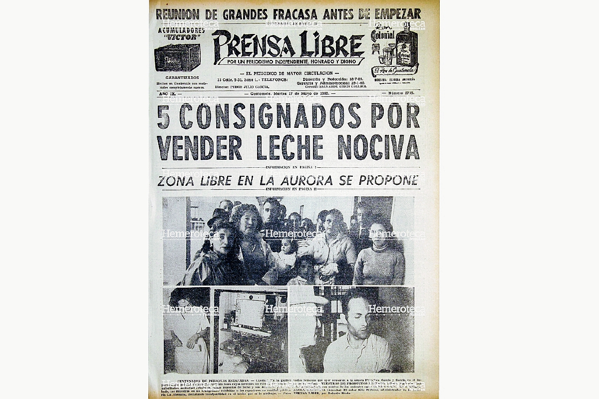 Una de las fotografías de portada de ese día fue sobre inspecciones que Sanidad Pública hizo en varios expendios de lácteos de la Ciudad, a las cuales tuvo acceso la Prensa.