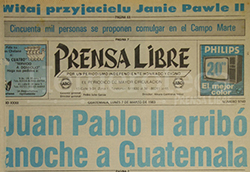 El 6 de marzo de 1983 Juan Pablo II llega por primera vez a Guatemala.