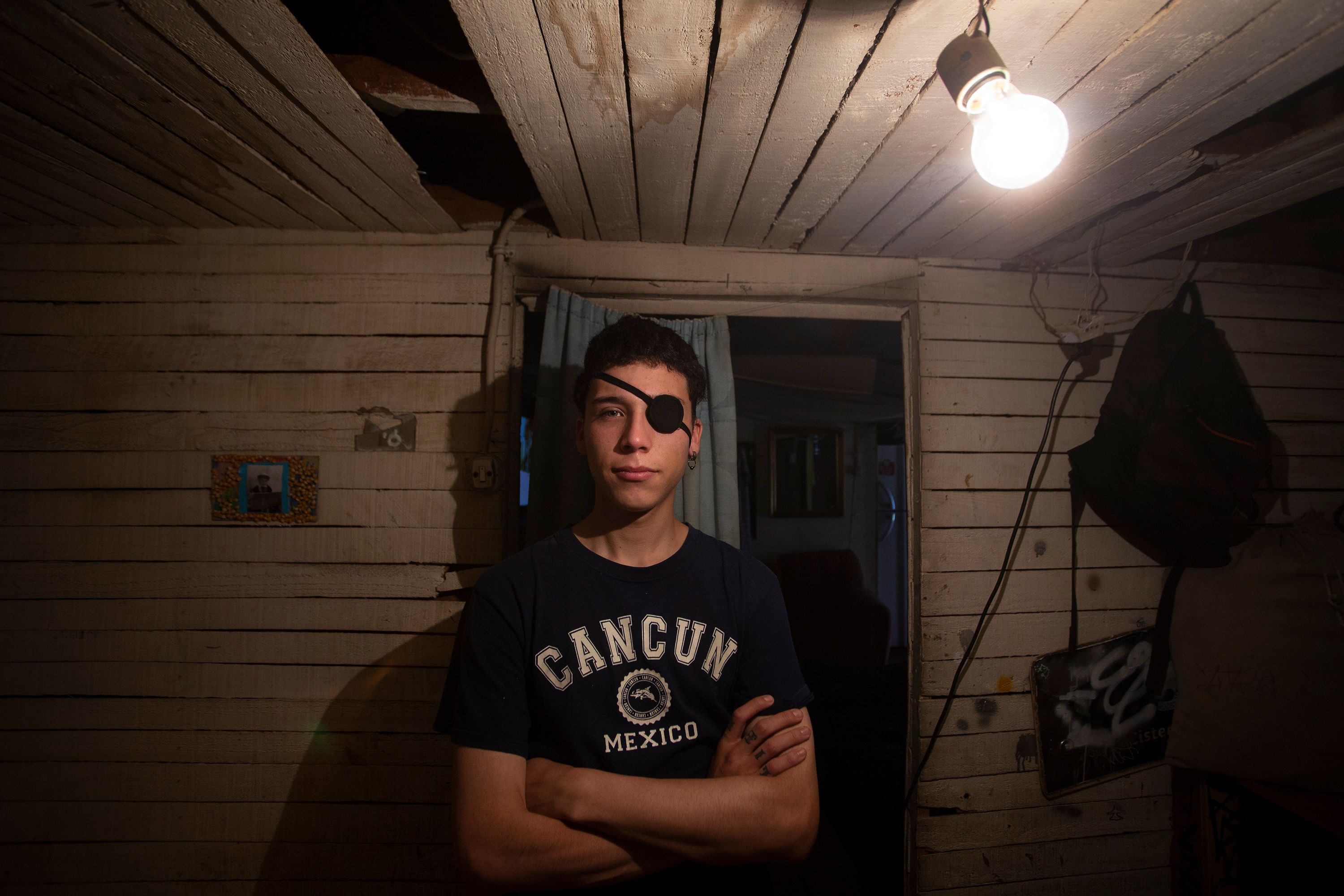 Este estudiante secundario perdió la visión total en su ojo izquierdo hace tres semanas, cuando fue a una protesta en su barrio y mientras corría para evitar a la policía recibió ocho perdigones en su cuerpo, incluido el que le causó la grave lesión ocular en el ojo izquierdo.