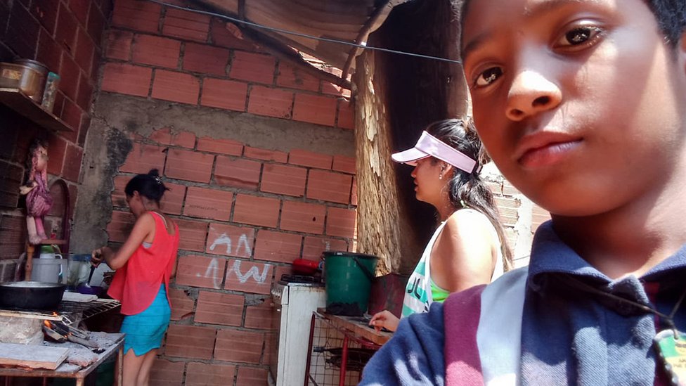 [Juan David y su familia están en una vivienda muy pobre similar a la que habitaban en Venezuela. No pagan arriendo porque no está apta para vivir y no hay gas. Cocinan en un fogón, por lo que Juan David, como en Venezuela, debe ir a buscar leña]