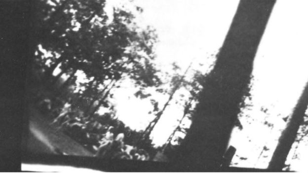 Una foto tomada de manera clandestina por un Sonderkommando muestra claramente cuerpos incinerados en una fosa al aire libre, lo cual supondría años más tarde una valiosa evidencia.