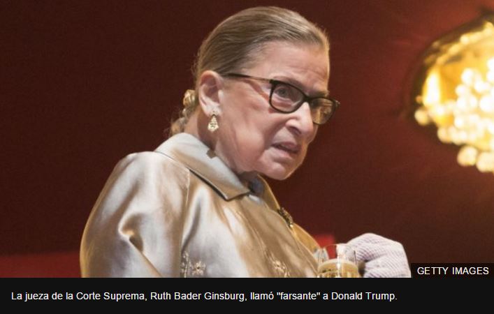 Ruth Bader Ginsburg, una de los ocho magistrados que componen el más alto tribunal estadounidense, rompió la tradicional imparcialidad que caracteriza a los juristas que ocupan ese cargo, para criticar al virtual nominado republicano de cara a las elecciones presidenciales de noviembre.
