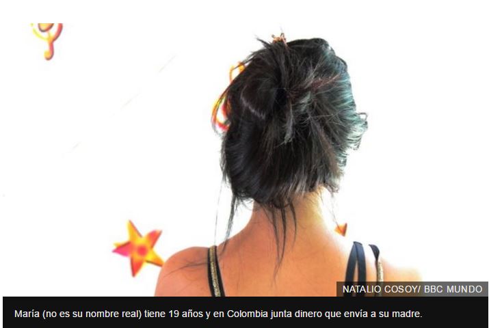 “Hacer esto no es nada fácil”, advierte María. “A lo mejor todo el mundo dice que uno se gana la plata fácil, pero no… Que uno tenga que venir a acostarse con personas mayores, a veces vienen borrachos”.
