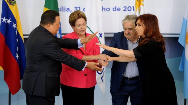 Líderes de la izquierda de Venezuela, Brasil, Uruguay y Argentina fueron una vez una fuerza unida. (AFP)