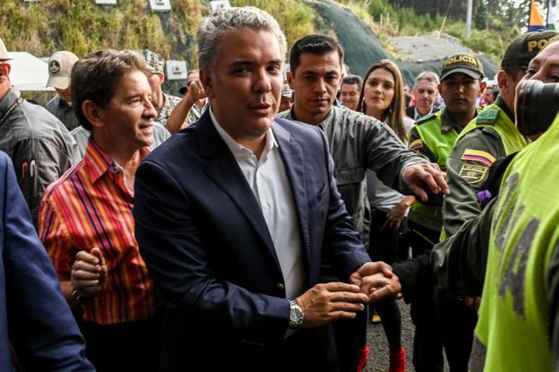 Poco después, las autoridades colombianas afirmaban que el video se había grabado en territorio venezolano y Duque aseguraba que Colombia se enfrentaba a “una banda de narcoterroristas que cuentan con el albergue y el apoyo de la dictadura de Nicolás Maduro”.
