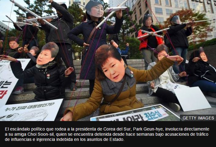 “En las primeras etapas del escándalo, los rumores decían que la presidenta podría estar participando en rituales de culto con su vieja amiga Choe Soon-sil, con quien ya cortó toda conexión”, amplía Evans.