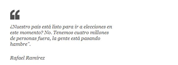 Así lo cree Rafael Ramírez, el que fuera por 12 años el “zar del petróleo” como presidente de la estatal PDVSA, el pulmón financiero (y el corazón y las piernas…) del país.