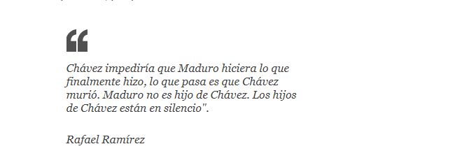 O si (Chávez) no podía asumir su mandato, porque no podía. Que estuviera Maduro de presidente pero Chávez estaría vivo y todos estaríamos allí. Chávez impediría que Maduro hiciera lo que finalmente hizo, lo que pasa es que Chávez murió. Maduro no es hijo de Chávez. Los hijos de Chávez están en silencio. Chávez ya lo habría removido.