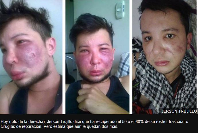 Hoy, con 28 años y tras cuatro cirugías más de reparación, Trujillo dice que ha recuperado aproximadamente el 50 o el 60% de su rostro. Pero estima que todavía le quedan dos operaciones más.