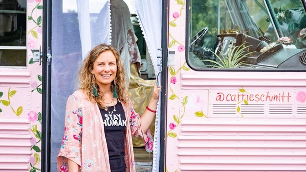 Comenzó a buscar un estudio, pero después de enfrentarse a los exorbitantes precios de las propiedades de Seattle, compró un autobús escolar, lo pintó de rosa, lo llamó Rosie y lo convirtió en un espacio de arte.
