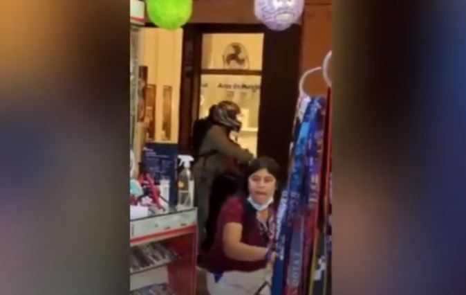 El vehículo avanza varios metros entre el asombro de los transeúntes, segundos después se escucha el impacto de cuando colisiona.