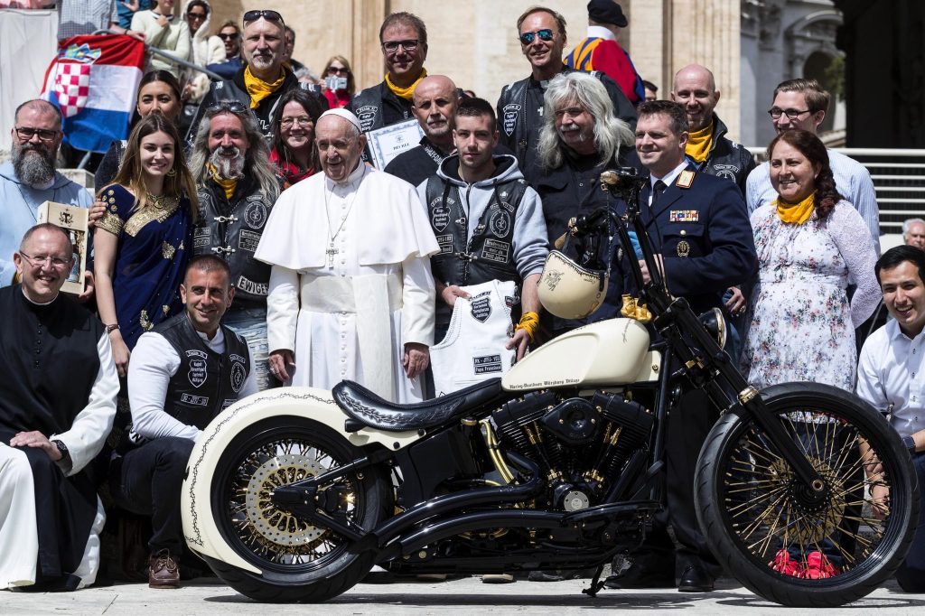 Francisco se acercó también a saludar a miembros de una asociación de motociclistas católicos procedentes de Würzburg (Alemania), que le presentaron un chaleco del club con su nombre.