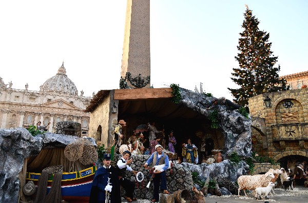El Nacimiento, colocado a los pies del obelisco de la Plaza de San Pedro, reproduce el paisaje maltés con su arquitectura, su fauna y flora locales.