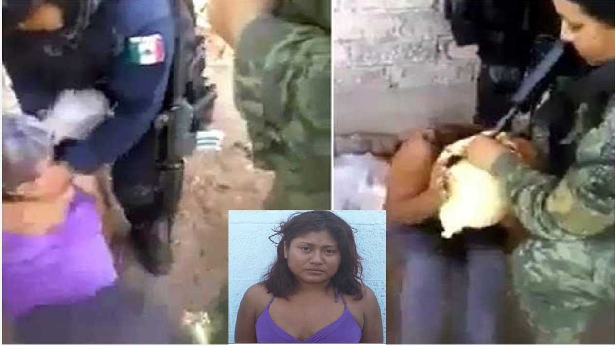 En el video se observa a una mujer descalza echada en el piso, que llora y grita mientras una soldado apunta un arma sobre su cabeza.