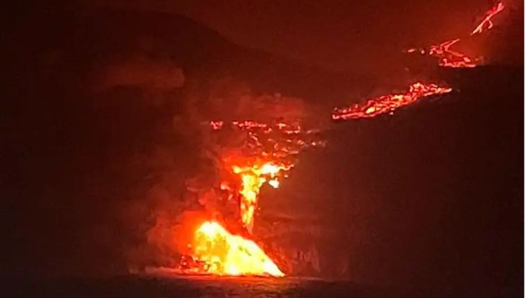 Desde que la lava del volcán Cumbre Vieja, en erupción desde hace 11 días, llegó finalmente al mar, esta se ha ido solidificando y conformando un delta o fajana que no para de crecer. La situación puso en alerta a las autoridades.