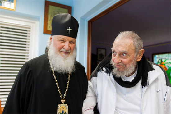 Fidel Castro, alejado del poder desde el 2006 por motivos de salud, recibió el sábado en la tarde a Kirill en su residencia en La Habana, donde “intercambiaron acerca de temas de interés vinculados con la causa de los pobres, la lucha contra la discriminación, la preservación de la paz y la supervivencia humana”.