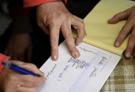 Una mujer firma un recibo tras recibir ayuda alimenticia en Olhao, en el sur de Portugal, el 14 de diciembre de 2012. (Foto Prensa Libre: AFP)