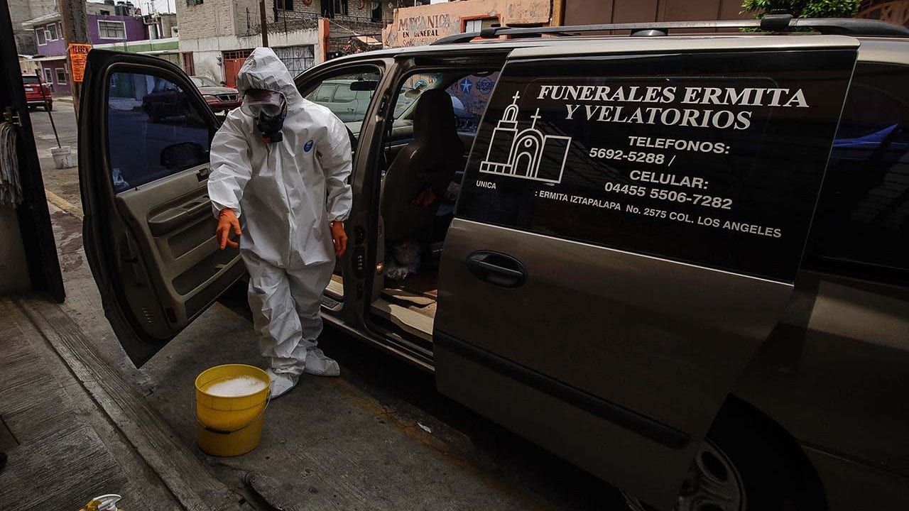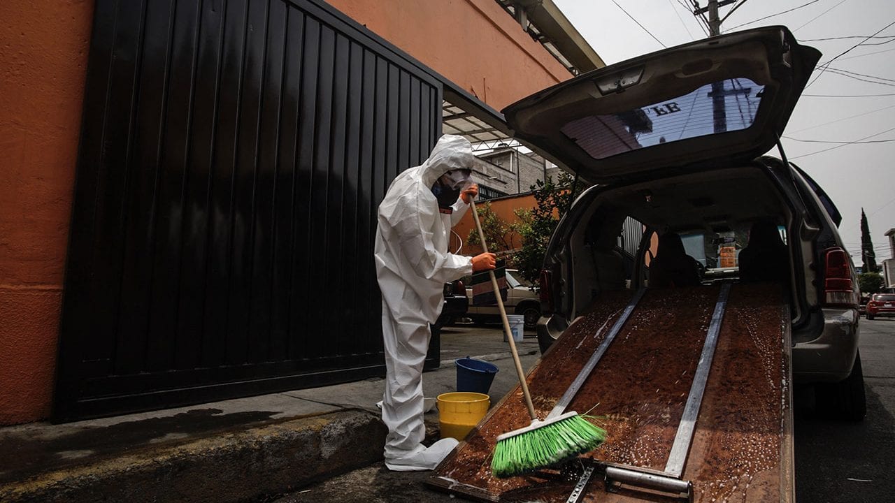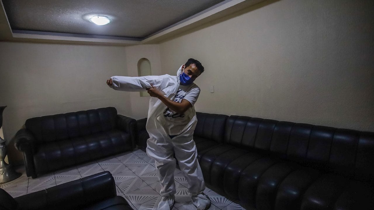 En el caso de la funeraria J. García López, el grupo que acude a recoger el cuerpo va dotado de un equipo de protección que incluye: guantes, cubrebocas, lentes protectores y un traje tipo astronauta. Además, el personal lleva aspersores con soluciones químicas para la sanitización de los instrumentos y el lugar, indicó el director general de la empresa, Manuel Ramírez.