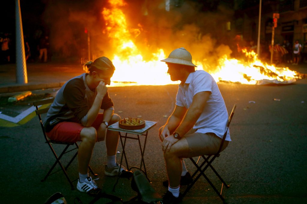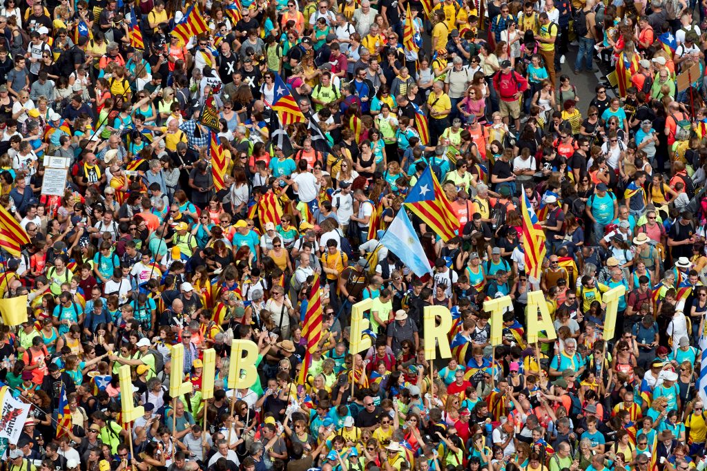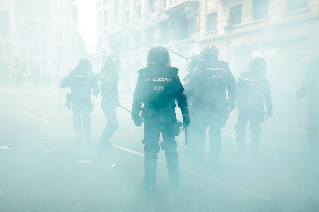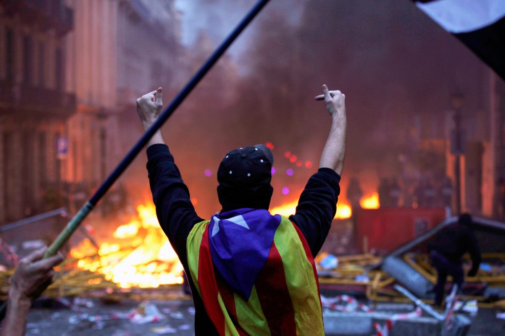 Tras noches de incidentes violentos, miles de personas en Barcelona, participan en una jornada de huelga general y movilización masiva del independentismo catalán contra la condena de nueve de sus líderes a duras penas de cárcel.