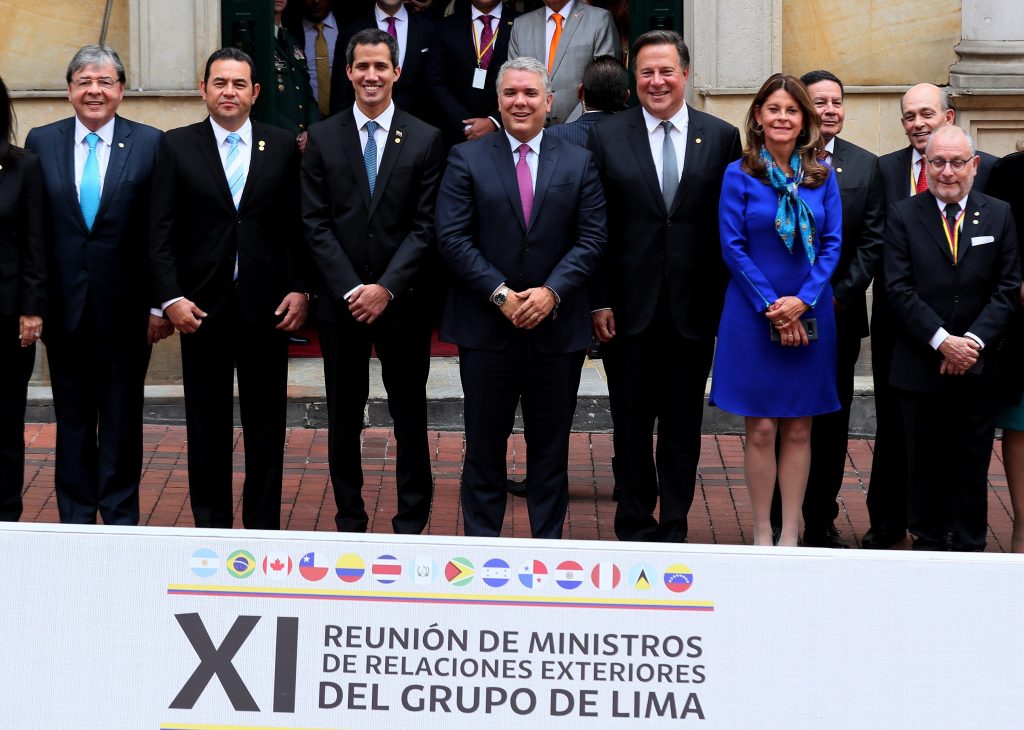 Al término de una reunión en Bogotá, en la que participó el opositor Juan Guaidó y el vicepresidente de Estados Unidos, Mike Pence, el bloque se apartó de la salida militar a la crisis.