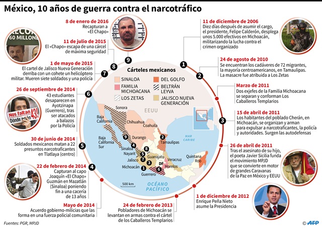 Y en el 2014, México se estremeció con la desaparición y presumible masacre de 43 estudiantes en Guerrero (sur) a manos de policías coludidos con narcotraficantes, un caso que se convirtió en símbolo de las 28.000 personas desaparecidas desde el 2006.