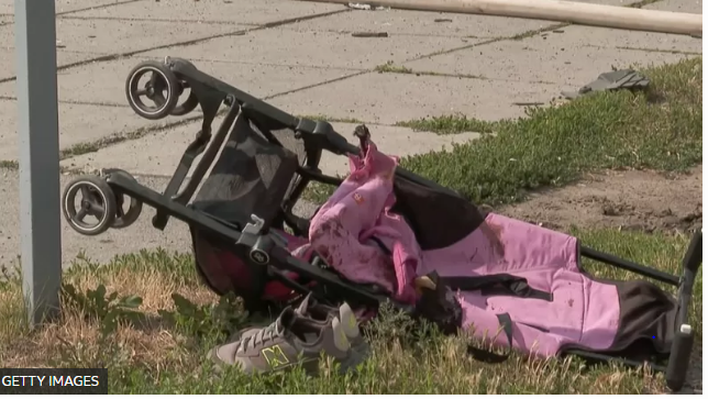 Agrega que 49 bienes civiles resultaron dañados: 33 edificios de viviendas, entre ellos cinco bloques de apartamentos, una escuela, una guardería, una facultad de medicina, un palacio de la cultura, una estación de ferrocarril y empresas.