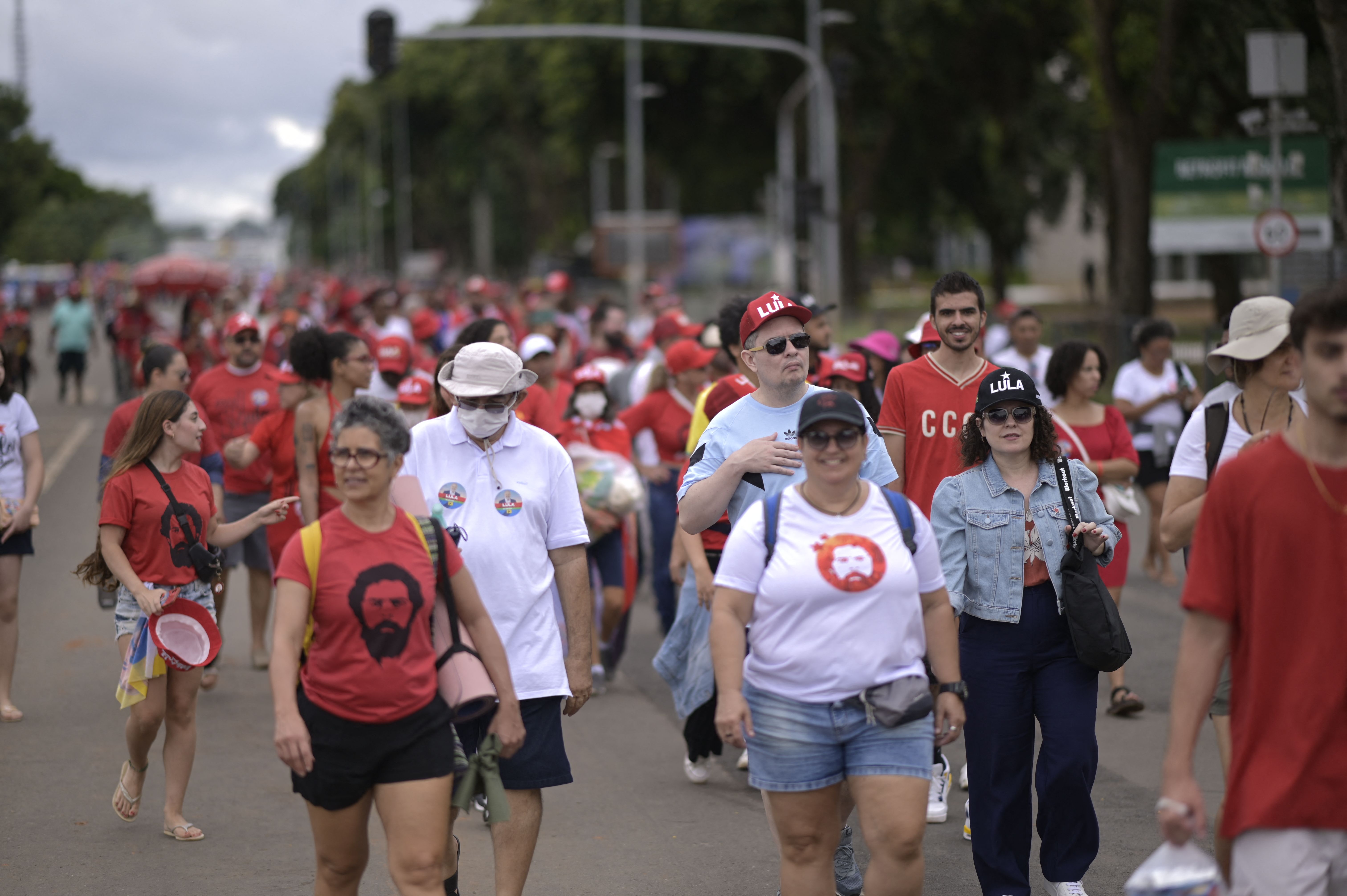 Algunos se pasaron primero por el hotel donde se hospeda el presidente electo, como Valter Gildo, quien desplegó una banderola que rezaba “Bienvenido de vuelta a la capital, presidente Lula”.