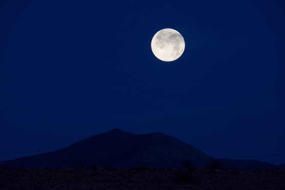 La superluna rosa sobre la localidad de Los Estancos, en Puerto del Rosario, en la isla de Fuerteventura. (Foto Prensa Libre: EFE)