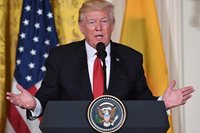 Trump llegó al Congreso y fue recibido por el líder de la mayoría republicana en el Senado, Mitch McConnell. Ambos sonrieron ante las cámaras e ignoraron preguntas de los periodistas.