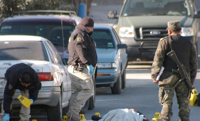 En la escena del crimen trabajan unos 20 peritos, miembros de la Fiscalía de Delitos de Alto Impacto, así como policías municipales y estatales.
