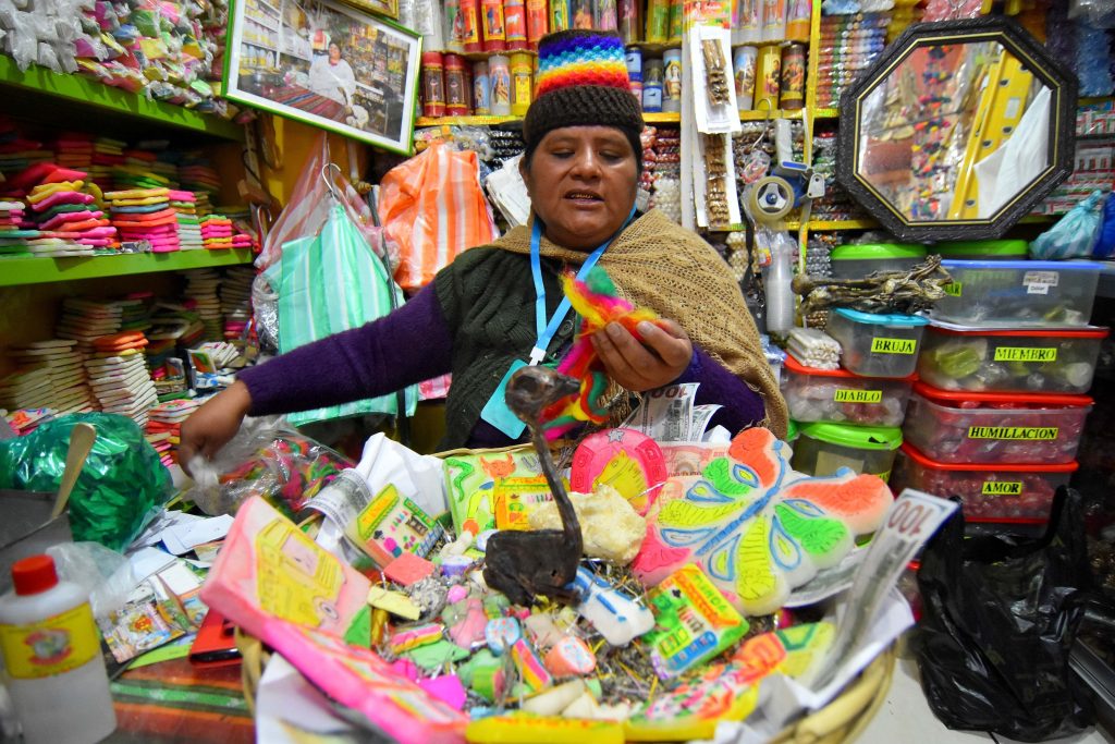 El Mercado de las Brujas se encuentra en la calle turística Linares, en el populoso barrio paceño de El Rosario, en cuyos alrededores hay tiendas y quioscos donde a diario se venden hierbas medicinales y elementos para estas ofrendas, de mayor demanda en este mes.