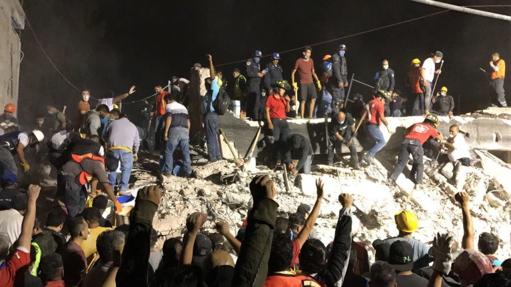 Las autoridades e innumerables ciudadanos removían por la noche escombros en diversos inmuebles colapsados en la Ciudad de México, donde se temía que hubiera un número indeterminado de personas.