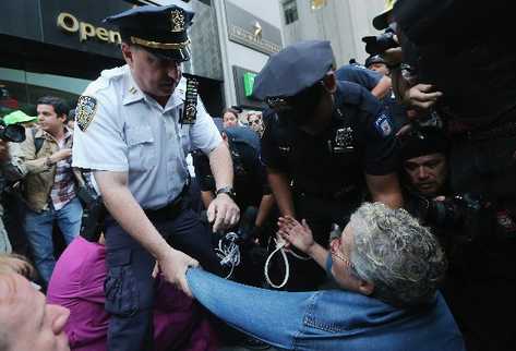 La Policía efectuó varias detenciones, alrededor de una docena, cuando los manifestantes intentaron tomar la calle y marchar hacia la Bolsa de Wall Street, muy cerca de allí.