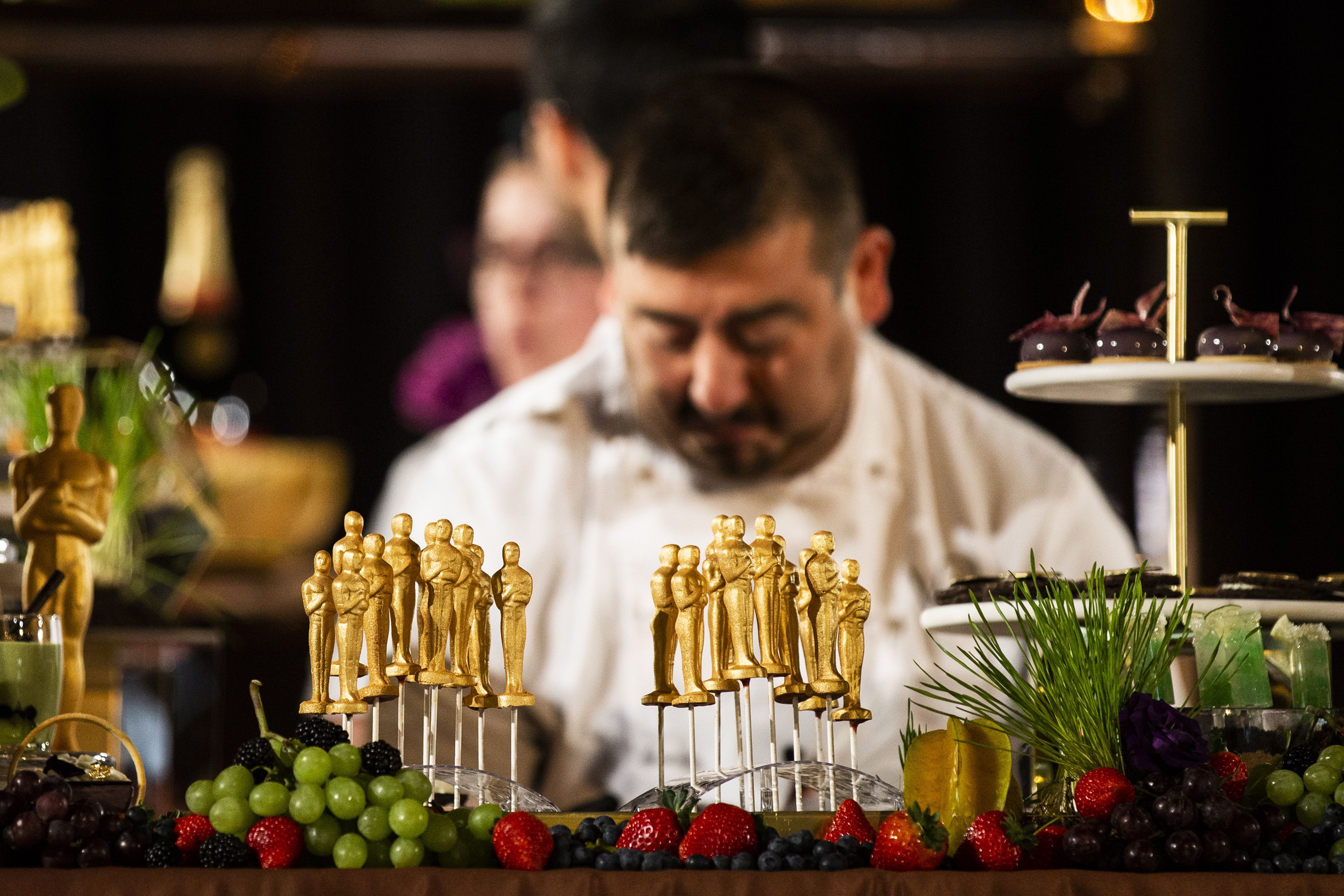 “Usamos mucha leche de almendras y de coco, y sorteamos las dificultades encontrando sustitutos”… como el chocolate vegano de Valrhona, que le permitirá hacer las famosas estatuillas doradas que imitan los Óscars.
