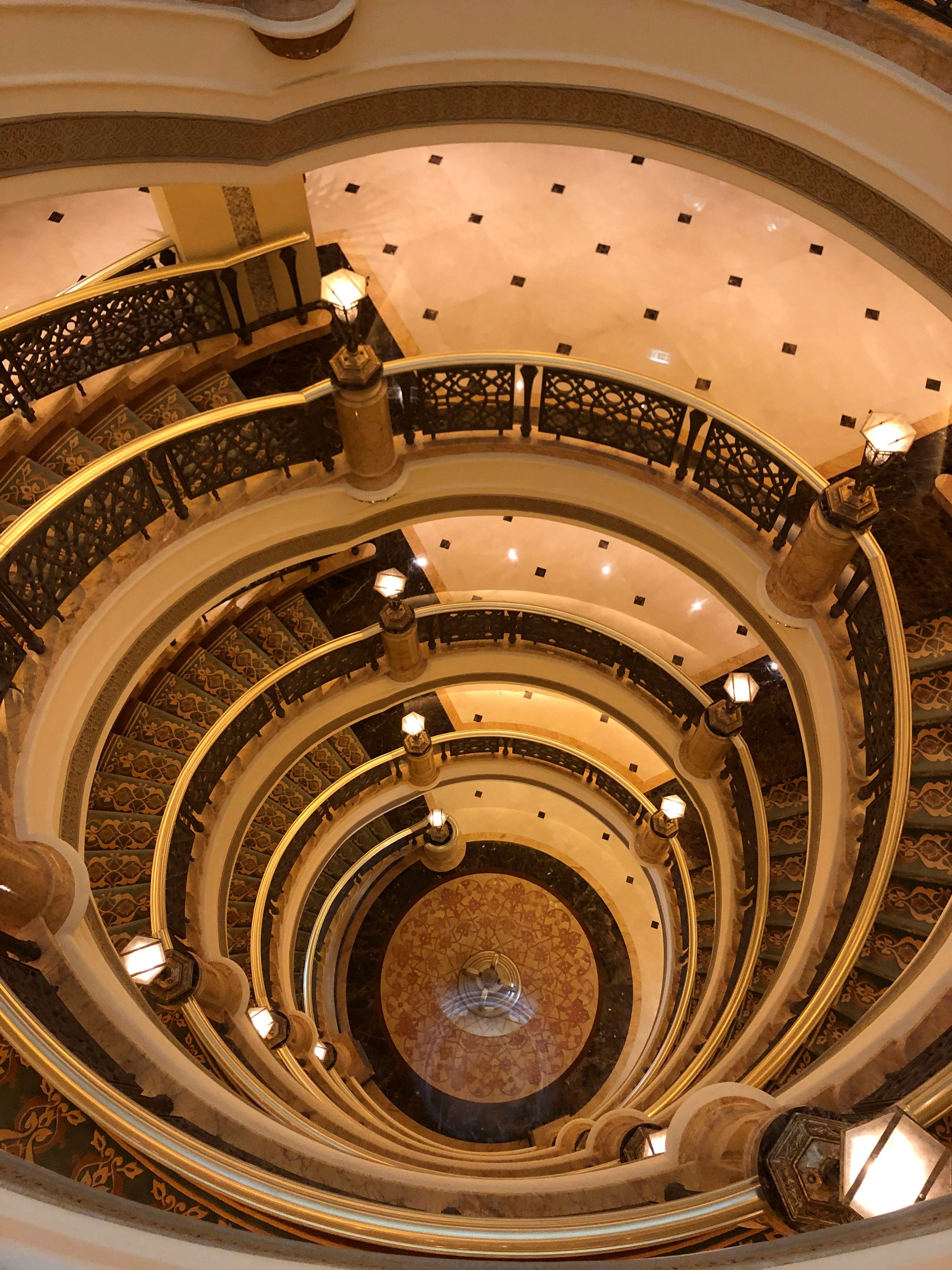 El Emirates Palace abrió en 2005 y oficialmente costó US$3 mil millones. Está lleno de oro y mármol; desde los cubiertos del restaurante hasta los techos de pasillos siempre brillantes y pulidos tienen detalles del dorado metal. Todo es ostentación.