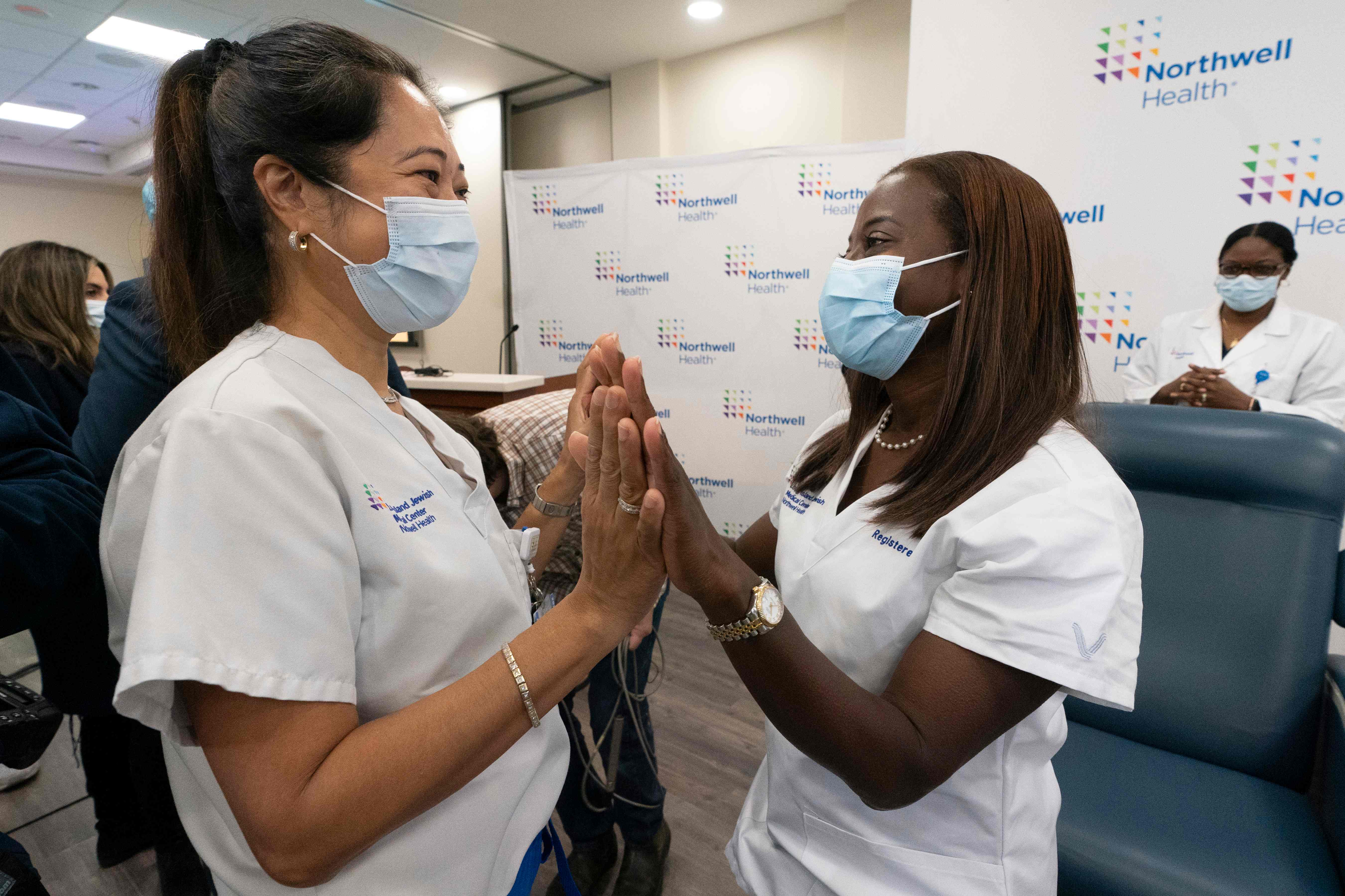 Sentada en una silla, junto a la doctora que le inoculó la dosis, también afroamericana, Lindsay quiso dar las gracias a todos los trabajadores de primera línea del mundo que como ella han luchado y siguen luchando contra la enfermedad, que en Nueva York ha causado más de 35 mil muertes, sobre todo durante la primera ola de la pandemia en la pasada primavera.