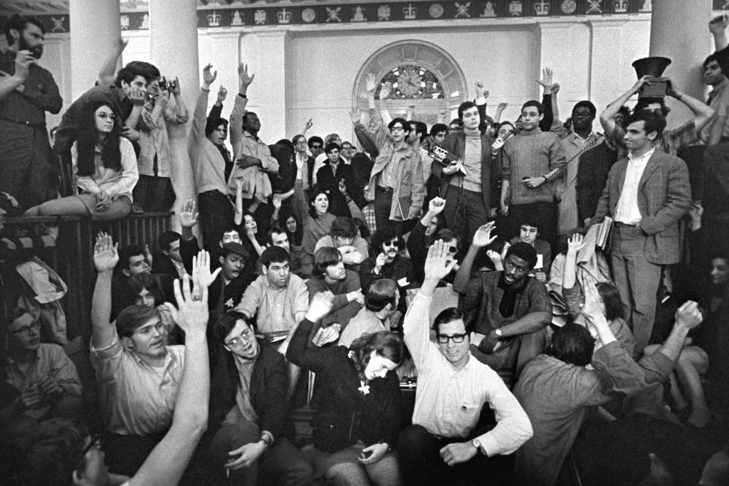 Estudiantes en el Hamilton Hall de la Universidad de Columbia en Nueva York, el 23 de abril de 1968. (Don Hogan Charles/The New York Times)