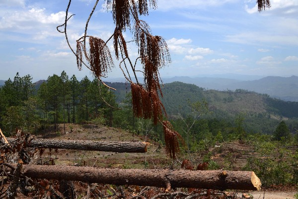 Ciertamente, en un sobrevuelo por los cuatro puntos cardinales del accidentado territorio hondureño, se observan las vastas manchas marrones o rojizas en medio del verde de los bosques, poblados predominantemente por coníferas.