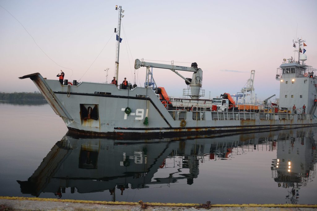 “El T-91 ‘Les Moines’ de las Fuerzas Armadas Bolivarianas llegó al puerto de La Habana con ayuda para las personas afectadas por el fuerte tornado”, escribió en su cuenta de Twitter la embajada de Venezuela en Cuba, divulgando una foto del barco.