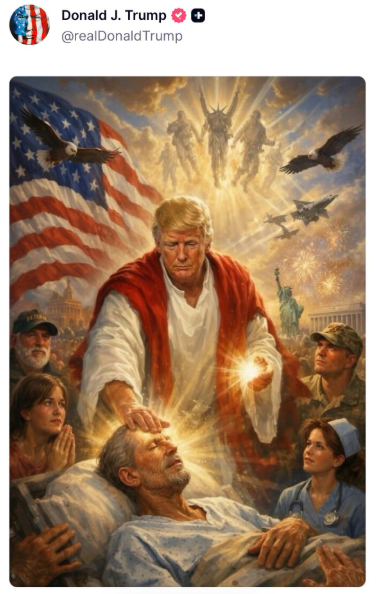 Mediante una publicación en la plataforma de Truth Social, el presidente estadounidense Donald Trump se presentó el pasado domingo 12 de abril como una figura mesiánica similar a Jesucristo, sanando enfermos y rodeado de símbolos militares. Sin embargo, menos de 24 horas después, eliminó la imagen de todas sus redes sociales.
