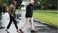 Acompañado de la primera dama Melania Trump, el presidente se dirigió directamente al Centro NRG y fue recibido cálidamente por voluntarios y niños. Los Trump trajeron crayones y libros para colorear y se sentaron con familias desplazadas. El presidente cargó a una niña y le dio un beso. Antes de marcharse escribió su nombre en una pared en la que había dibujos hechos por los niños.