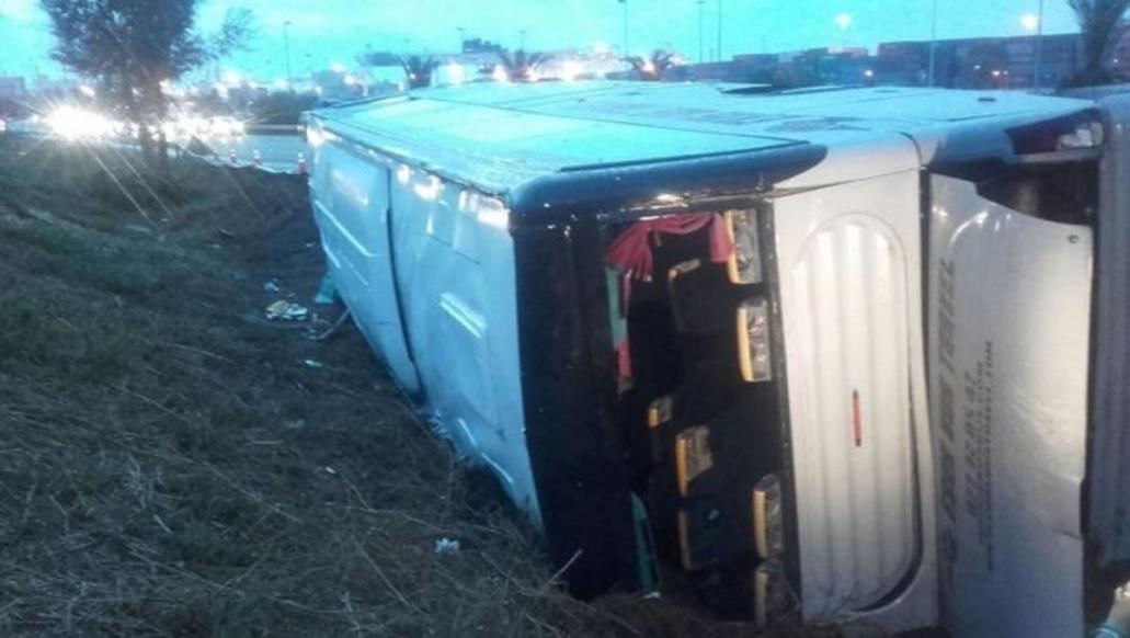 En plena noche y bajo una intensa tormenta, el autobús volcó a las 03H10 (01H10 GMT) en una de las carreteras de circunvalación de la ciudad cuando se dirigía hacia el aeropuerto de El Prat, explicó un portavoz del servicio de emergencias.