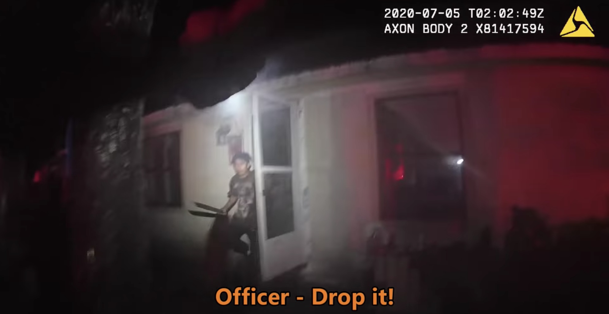 Ya con agentes policiales en el lugar, se observa, en las grabaciones de la cámara policial de uno de los agentes, el momento exacto en el que el oficial se acerca a la casa donde Pérez se escondía.