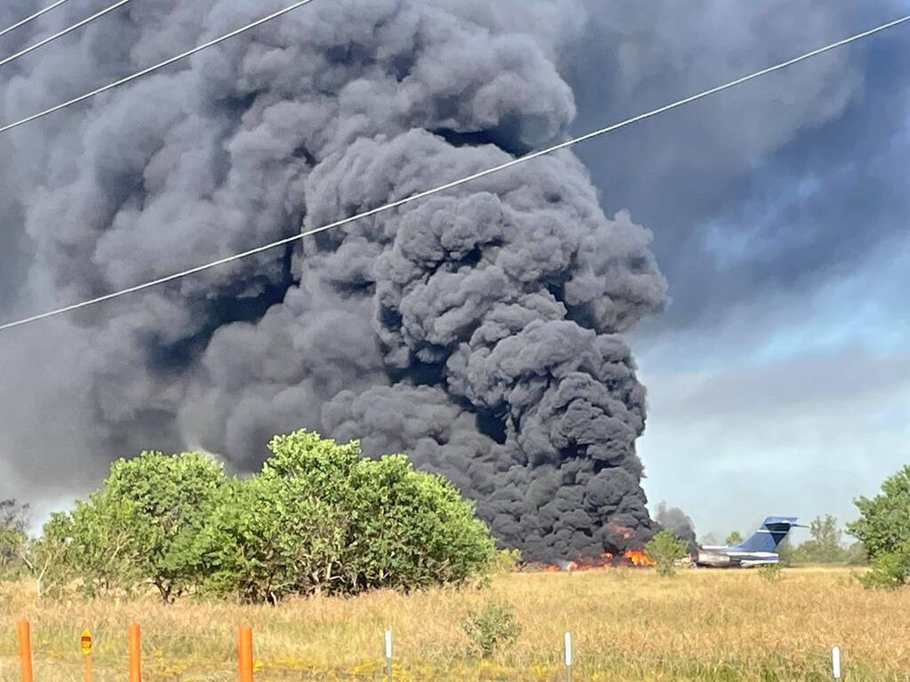 Una espesa columna de humo se observaba a kilómetros del accidente de un avión en Texas, en el que todos los ocupantes sobrevivieron. (Foto Prensa Libre: Twitter Nick Natario)